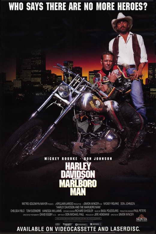 Harley Davidson and the Marlboro Man In this action movie tough biker Harley Davidson Mickey Rourke teams up with his cowboy-hat-wearing buddy known as.